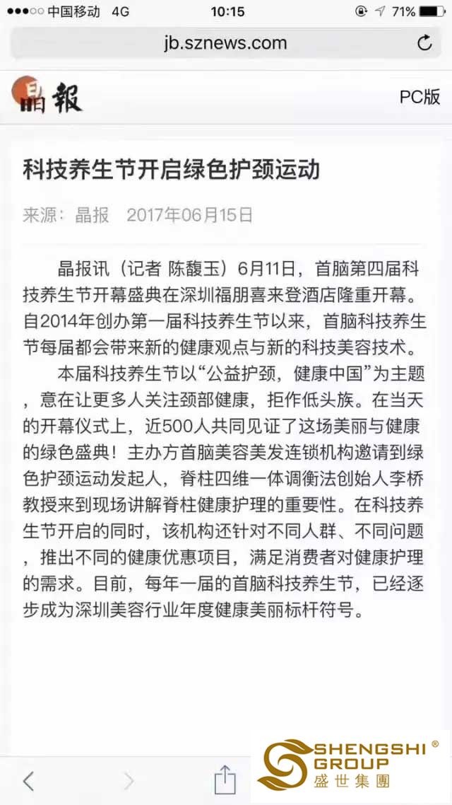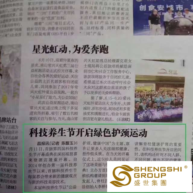 于盛世而言,這是社會各媒體對【綠色護頸運動】傳播健康與愛的極大支持與助力,同時,這也是一份來自社會對盛世企業(yè)的十足認可。