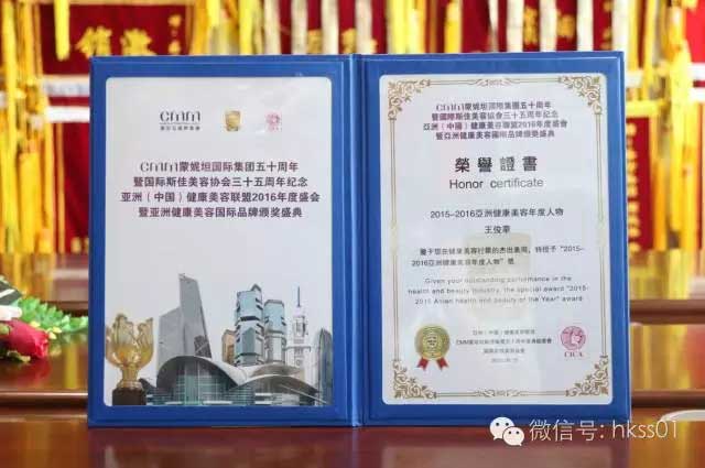盛世集團(tuán)董事長(zhǎng)王俊華女士獲得2015-2016亞洲健康美容年度人物獎(jiǎng)